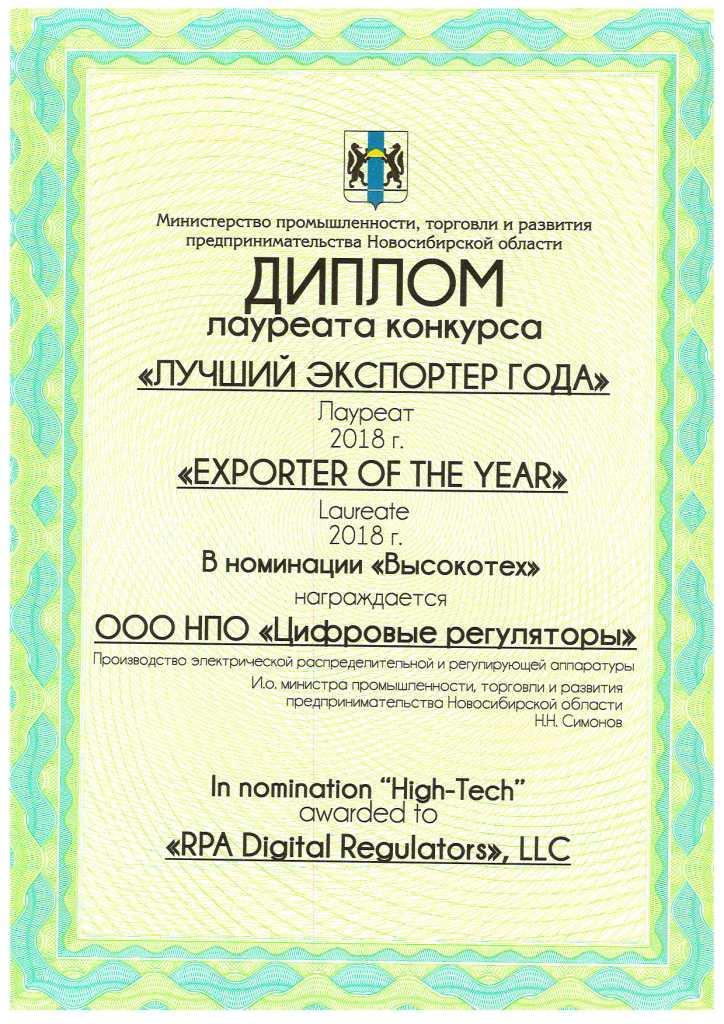 ООО НПО «Цифровые регуляторы» было удостоено награды в номинации «Высокотех (наибольшая технологичность)» как производитель электрической распределительной и регулирующей аппаратуры.